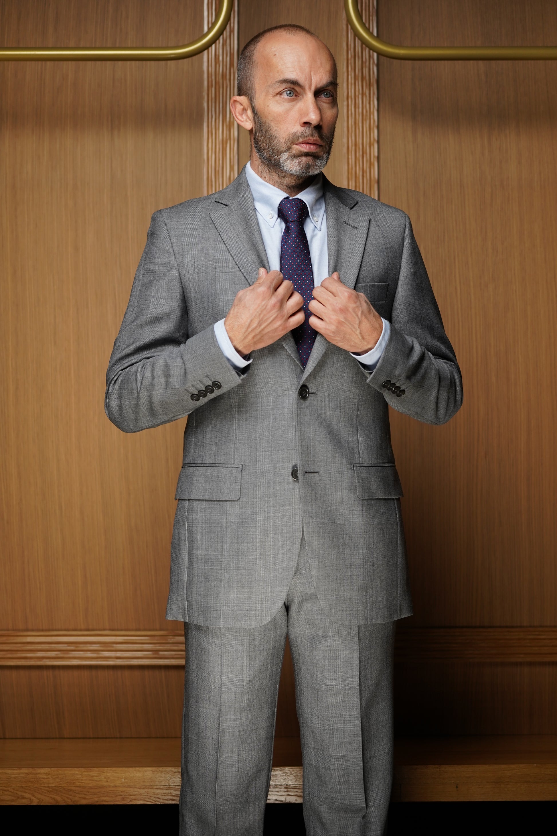 Ce costume Coriolan Tradition illustre parfaitement l’alliance entre élégance intemporelle et savoir-faire tailleur. Réalisé en tissu Vitale Barberis Canonico Super 120, il se distingue par son motif Prince de Galles en gris moyen, subtil et raffiné, apportant profondeur et caractère à la silhouette.
